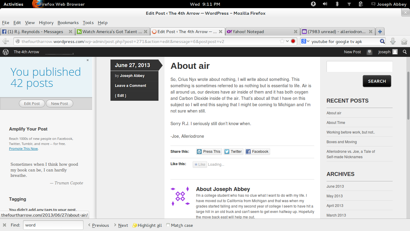 Now that was a post about nothing at all and a great book club type of thing. I was thinking about quitting at 42 but since this is my 43rd post I have to continue but most people do a cool post congratulating themselves at 50 or 100 so I will continue and my next post like this will be my 143rd post, YES! I made it, but not done yet, thanks.